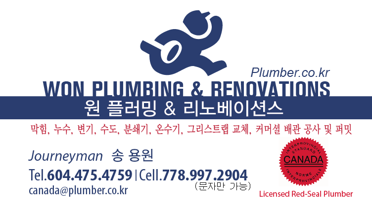 “코퀴틀람 플러머”, “버크마운틴 드레인 클리닝”, “한인 플러머”를 찾으신다면 Won Plumbing 이 최적의 선택입니다.